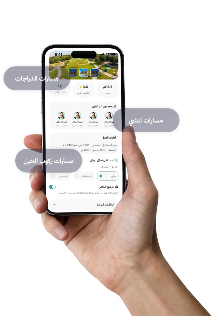 اكتشف أماكن رياضية وترفيهية جديدة من حولك، وشارك تحديات مشوقة مع أصدقائك لرحلة مليئة بالحركة والتفاعل